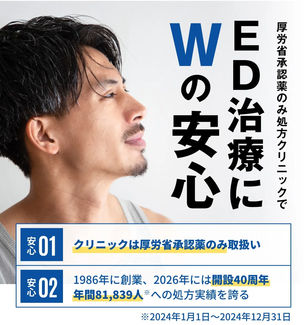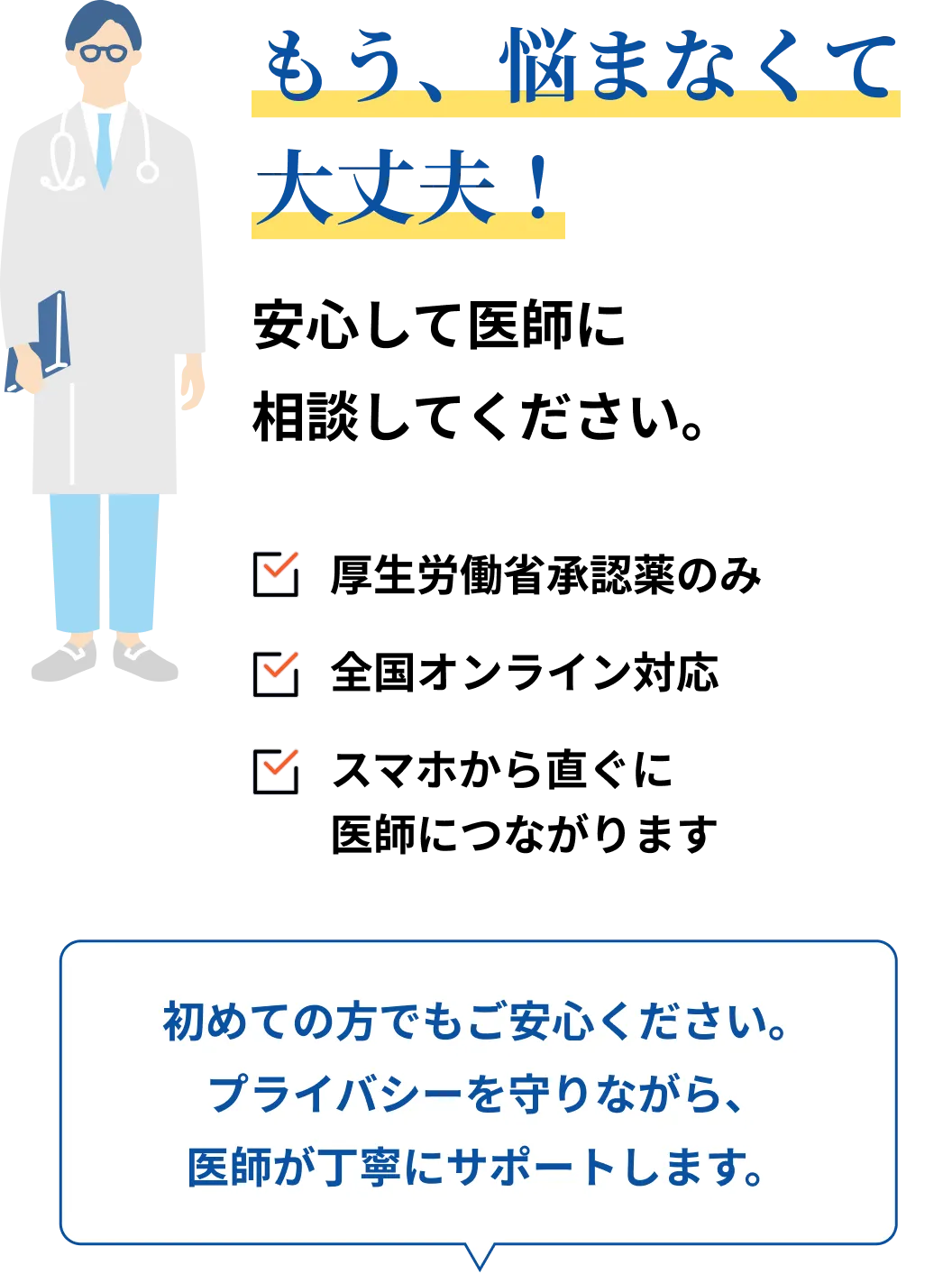 男性の悩みに寄り添ってきた専門クリニックだから、料金・診察・プライバシー、すべてにおいて安心です。