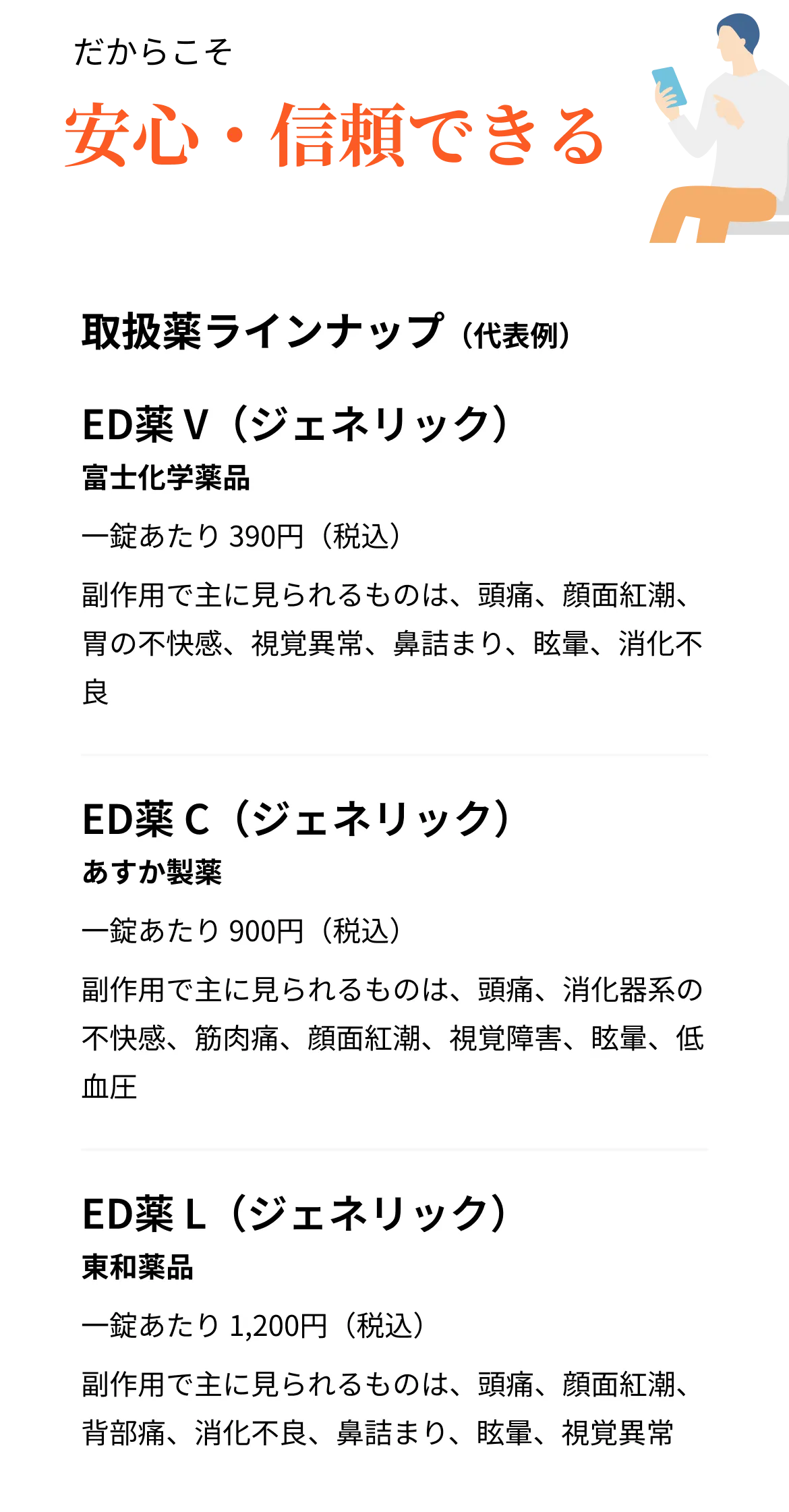 ※入手経路:大手医薬品メーカー・大手医薬品卸より、厚生労働省承認薬を仕入れています。